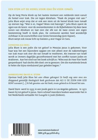 Blum werpt ook nieuw licht op Galaten 4 over Hagar en Sara. Genezing als doel Julia Blum is een Jodin die tot geloof in Messias Jezus is gekomen. Voor haar was het een bijzondere opgave om niet alleen over de nakomelingen van Izak, maar ook over die van Ismaël te mediteren. Als inwoner van Israël wordt ze immers dagelijks geconfronteerd met het conflict tussen Joden en Arabieren. Aan het eind van het boek schrijft ze: “Alles wat de Heer hier heeft geopenbaard had slechts één doel: om te genezen. Om die martelende breuk te helen die bijna vierduizend jaar geleden begon.”