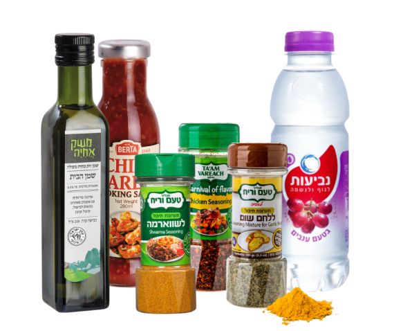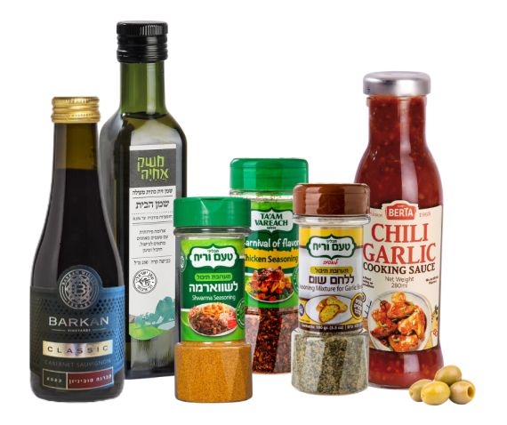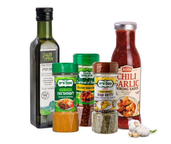 Dit pakket bevat eerste klasse Israëlische olijfolie, kruiden voor knoflookbrood, kip en shoarma en de bekende chili-knoflook saus en hét Israëlische bier Goldstar (dark lager, 2 flesjes).