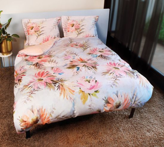 Art nr. 30416kDekbedovertrek Elim. Prachtig natuurlijk dessin van grote bloemen in boeketten. 100% katoen-satijn = 100% luxe en zacht. Met ruime instopstrook. Inclusief kussenslopen van 60-70cm. Lees meer