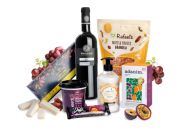 Dit is een mooi pakket met een fles heerlijke Argaman (dit is een Israëlische druif, zacht en col van smaak), een zachte handzeep, een dadelspread zonder toegevoegde suiker, ontbijtgranen met noten en fruit, kruidenthee met mango en passievrucht, lekkere citroenwafeltjes en een smakelijke dadelreep voor nieuwe energie.
