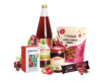 Art nr. 09532Geliefd pakket met een literfles pure druivensap, ontbijtgranen met cashewnoten en cranberries, aardbeienjam, een doosje rooibosthee met granaatappel en een vezelrijke dadelreep met cashewnoten en cranberries. Lees meer