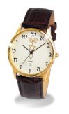 Met op de wijzerplaat in goudkleur gegraveerd de Menora-Davidster-Ichtusvis en daarbij een datumnotering.