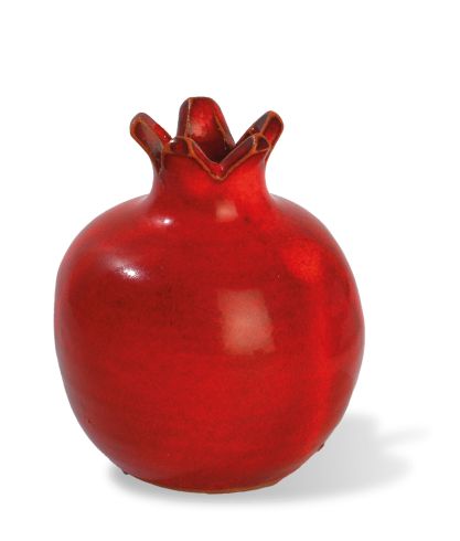 Met de hand gemaakte granaatappels van aardewerk, in prachtige warmerode tinten en geglazuurd. Unieke kunstwerkjes om zo neer te zetten of te gebruiken als kaarsenstandaard of als vaasje voor droogbloemen.