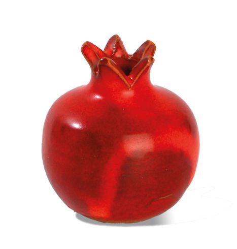 Met de hand gemaakte granaatappels van aardewerk, in prachtige warmerode tinten en geglazuurd. Unieke kunstwerkjes om zo neer te zetten of te gebruiken als kaarsenstandaard of als vaasje voor droogbloemen.