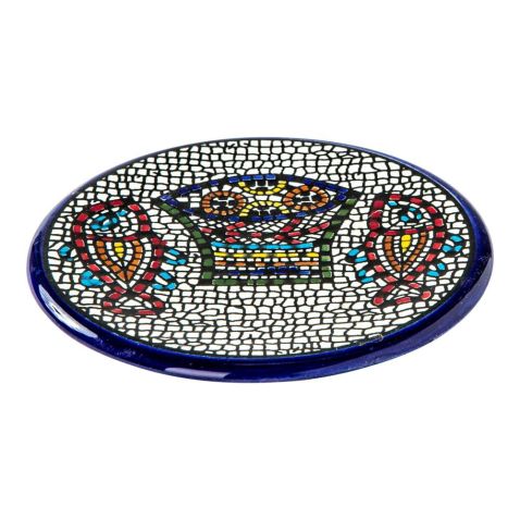 Art nr. 67441Grote schaal van Armeens aardewerk, handgemaakt en -beschilderd in Jeruzalem. Vaatwasser- en magnetronbestendig.Design: Mozaïek Broden en vissen, naar een mozaïek dat bij het Meer van Galilea gevonden is. Lees meer