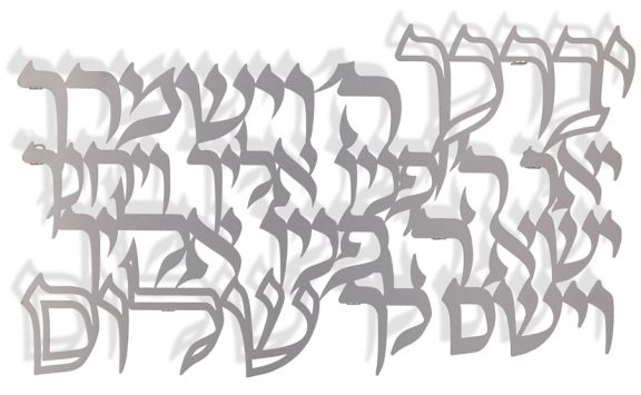 *Op de afbeelding staat de letter H als weergave van de Godsnaam JHWH. De Naam wordt alleen in de Bijbel en de gebedenboeken voluit geschreven. De Naam wordt niet uitgesproken. Tijdens het gebed en het lezen van de Bijbel in de synagoge wordt er Adonai (= Heer) gezegd. Daarbuiten wordt er meestal Hasjém (= de Naam) gezegd in plaats van Adonai.Zwevende letters, prachtige Hebreeuwse tekst, die 2 cm van de wand af hangen, wat mooie schaduwen geeft. Wordt geleverd in mooie geschenkverpakking.